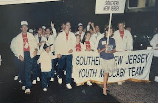 The first South Jersey team in the 1988 Maccabi Games in Chicago. David spearheaded the recruitment and planning for this first South Jersey team to attend the Maccabi Games that year. David's son, Ari, is walking in the opening ceremonies with the team.